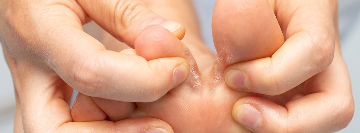 El pie de atleta afecta principalmente a la piel del pie, sobre todo entre los dedos.