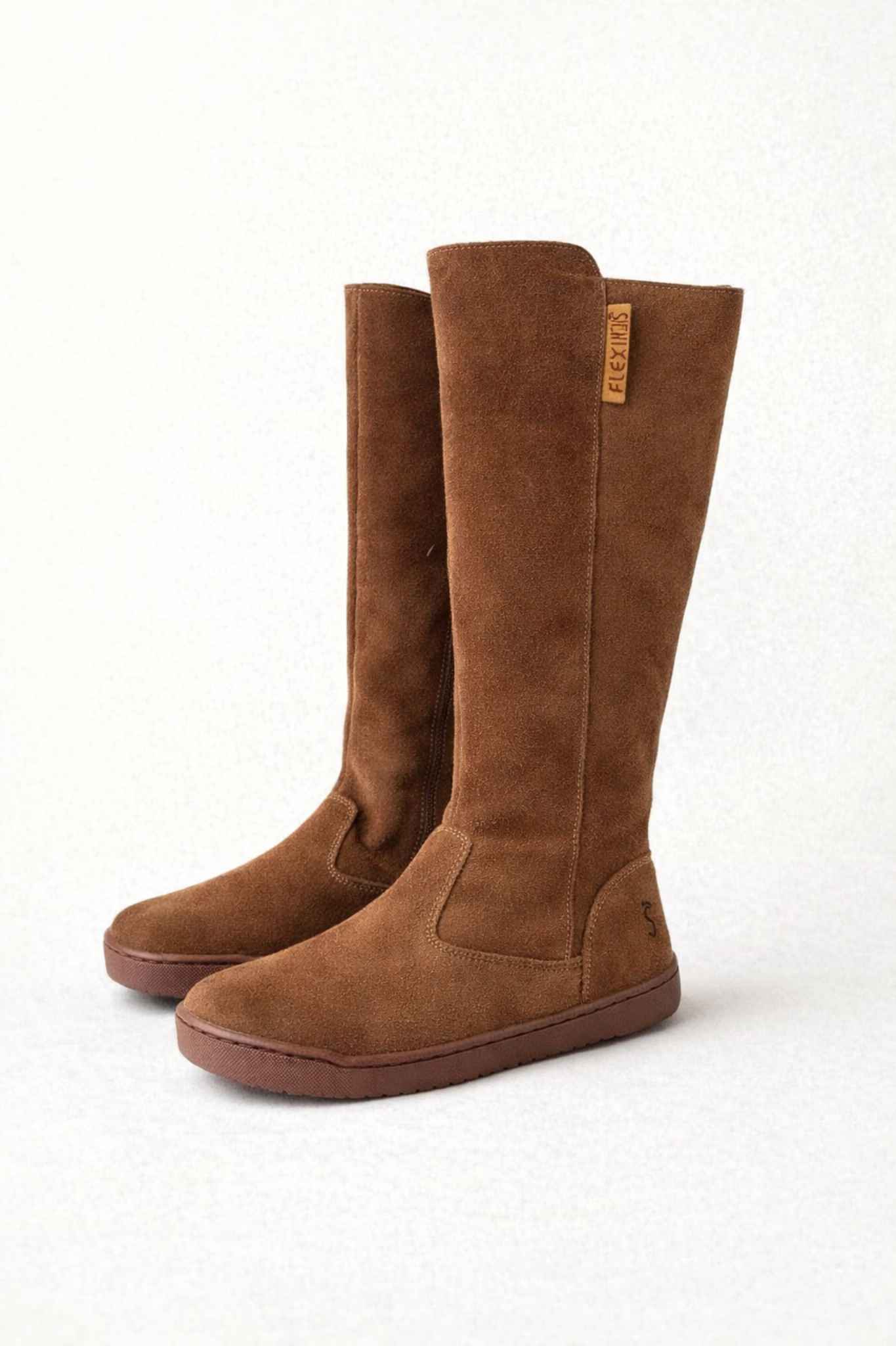 Las botas barefoot de caña alta para mujer de Flexinens son la opción perfecta para quienes buscan un calzado minimalista este invierno, sin renunciar a la elegancia ni al confort térmico. Su diseño alto hasta la rodilla ofrece mayor protección contra el frío, mientras mantiene todos los principios del barefoot: suela fina, zero drop, puntera ancha y sin contrafuertes.