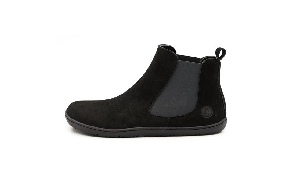 Botines barefoot Chelsea 4368 negros para mujer Coqueflex, fabricados en microfibra vegana resistente. Puntera ancha, suela plana y elásticos tipo Chelsea para un ajuste cómodo y minimalista. Se ajusta a pies estrechos y medios, y varios tipos de empeine.