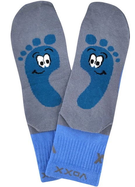 Calcetines barefoot para niños BAREFOOTIK azul claro de la colección deportiva VoXX®. Diseñados para respetar la forma natural del pie infantil, evitando que los dedos se apiñen y favoreciendo un desarrollo saludable.