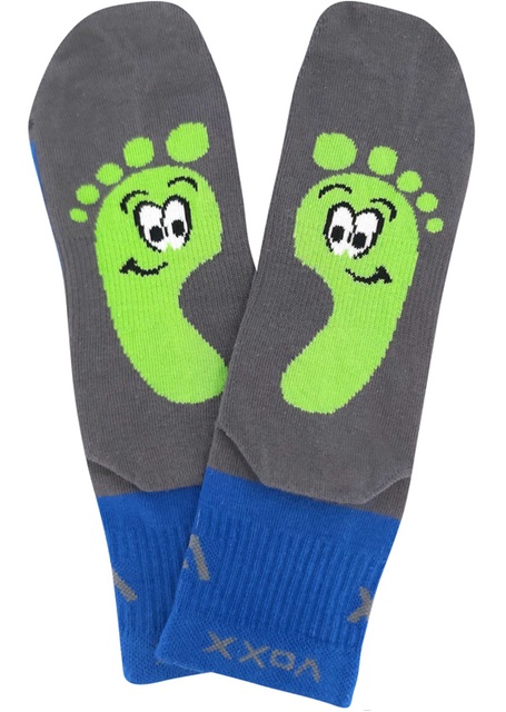Calcetines barefoot para niños BAREFOOTIK azul de la colección deportiva VoXX®. Diseñados para respetar la forma natural del pie infantil, evitando que los dedos se apiñen y favoreciendo un desarrollo saludable.