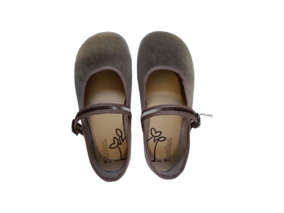 Merceditas barefoot de terciopelo, elegantes y cómodas para uso diario. Suela flexible de 5 mm, cero drop y puntera amplia para una pisada natural. Veganas y con cierre de hebilla para mejor ajuste.