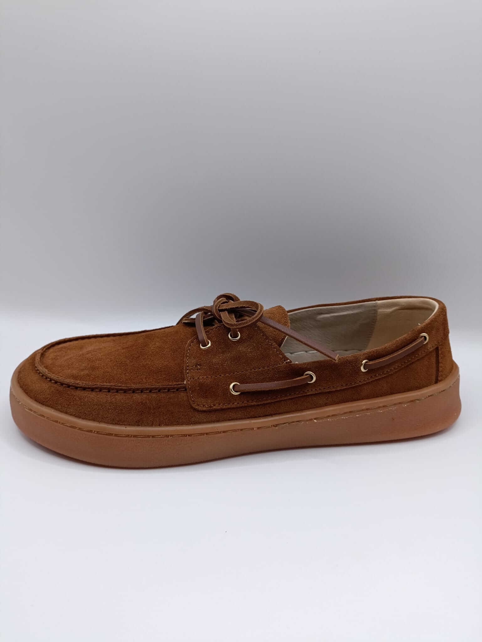 El náutico barefoot hombre Suede Rusey reinterpreta el clásico zapato náutico desde una perspectiva respetuosa. Confeccionado en piel natural de serraje marrón suave y aterciopelada, ofrece un acabado natural, elegante y fácil de combinar en cualquier temporada.
