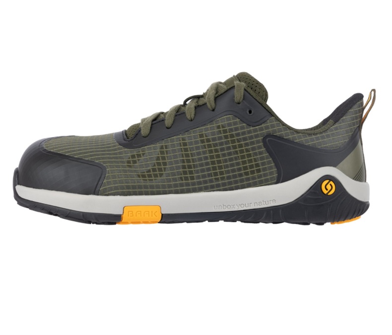El modelo Pan de BAAK es un calzado de seguridad barefoot ultraligero con certificación EN ISO 20345:2024 S1PS FO HRO SR ESD. Su diseño con puntera anatómica, zero drop y suela flexible permite que el pie se mueva de forma natural sin perder protección. Fabricado con materiales reciclados y compatible con plantillas ortopédicas. Ideal para trabajar con comodidad durante largas jornadas, sin renunciar a la libertad barefoot.