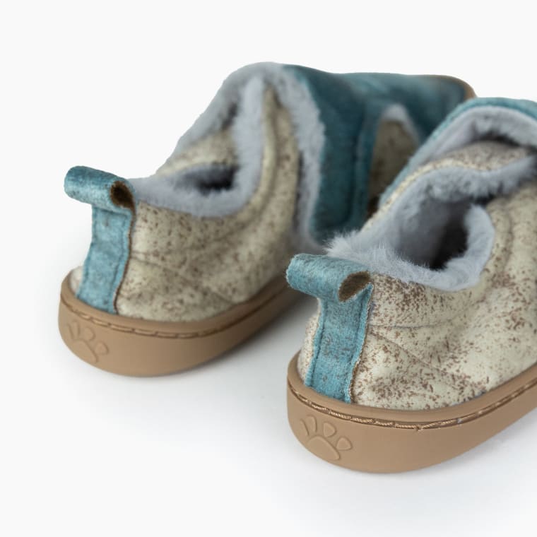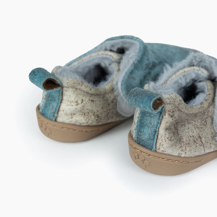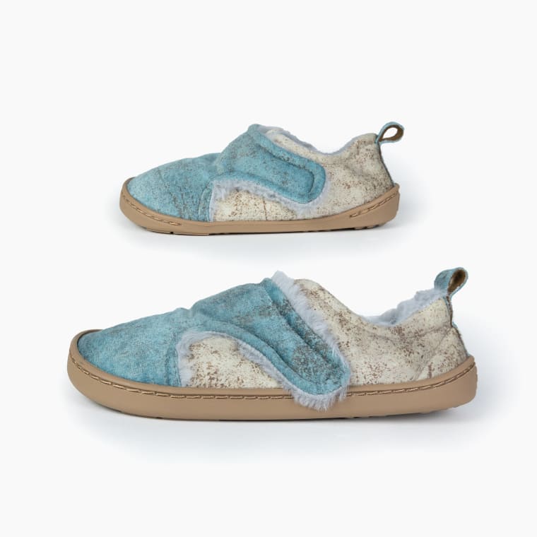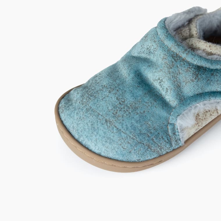 Paulitos ÉTER de BabyLobitos: calzado barefoot infantil para invierno, vegano, flexible y cálido. Forro con pelito hidrófugo, suela fina de 3.5 mm y diseño respetuoso con el desarrollo natural del pie. Hecho en España de modo sostenible.