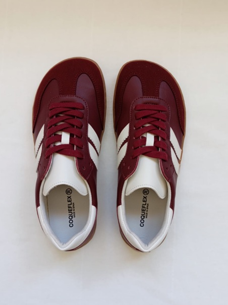 Zapatilla Coqueflex estilo samba borgoña barefoot unisex